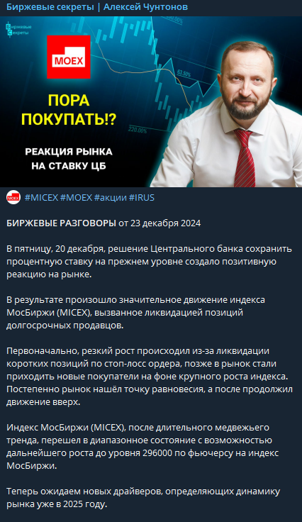 Алексей Чунтонов — посредственный экономист, который пытается собрать аудиторию за счет преподавания общих вещей. Никакой конкретики и реального разбора рынка. Вся аналитика — набор классических штампов. Рынок растет, значит надо покупать, падает — продавать. Контент ориентирован на совсем новичков, которые не прочитали ни одной книги про экономику или трейдинг.