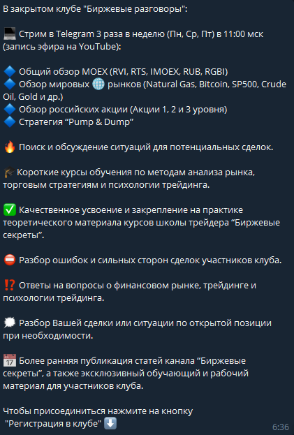На канале Биржевые секреты опубликовано несколько ознакомительных обучающих постов. В них Алексей перечисляет банальные истины: в трейдинге важна психология; нужно выставлять стопы; работать со своим таймфреймом полезно, а не со своим — не очень.