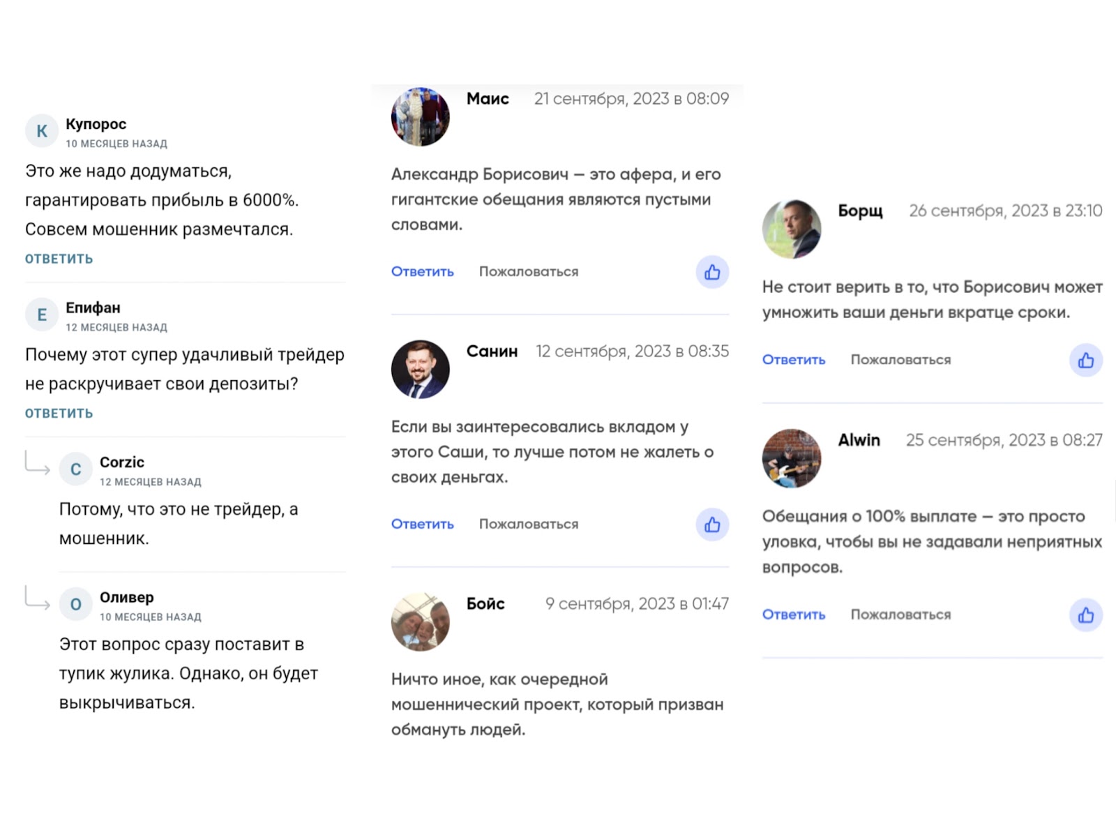 Сотрудничество с Александром Борисовичем может привести только к убыткам. Мы крайне не советуем данный проект.