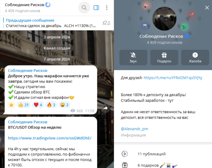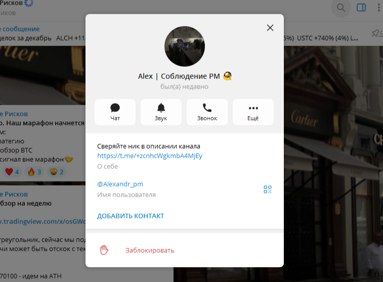 Обзор телеграм-проекта «Соблюдение рисков», анализ деятельности и отзывы о трейдере Alex РМ