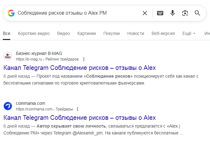 В качестве аватарки мужчина использует просто картинку. Очевидно, что он намеренно придерживается закрытого образа, и это настораживает. В сети о его проекте информации почти нет. Канал засветился в нескольких разоблачающих статьях. Отзывов от аудитории о Alex РМ «Соблюдение рисков» не видно.