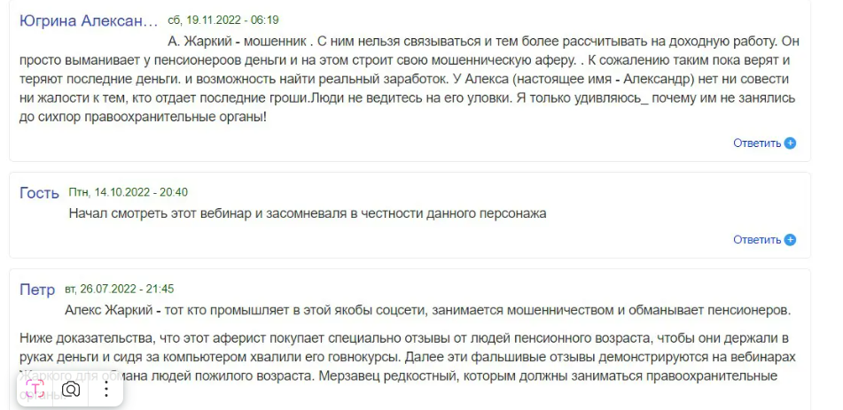 Аналогичные курсы Жаркого можно найти на сторонних сайтах по стоимости 500-2490 рублей. Разница значительная, что говорит об отсутствии реальной ценности и попытках «впарить» инфопродукт доверчивым новичкам.