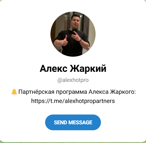 Еще есть страница Алекса Жаркого в ВК. В ней содержится перекрестный контент c ботом в ТГ и реклама платформы Neearbay.