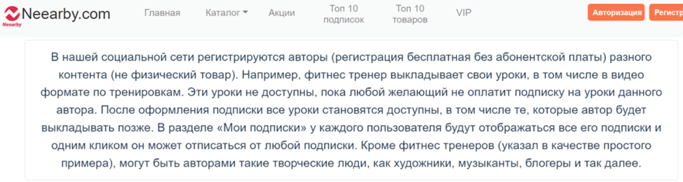 Neearby предназначена для заработка авторов на продаже курсов. Регистрация на сайте бесплатная, абонентской платы тоже нет. Экспертам нужно всего лишь выложить свои инфопродукты и дождаться, пока ученики начнут покупать подписку.