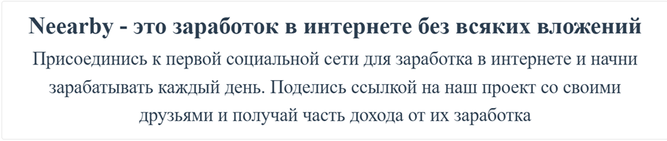 В проекте Neearby действует реферальная программа. Пользователи могут получать часть оплаты подписки каждым приглашенным ими другом.