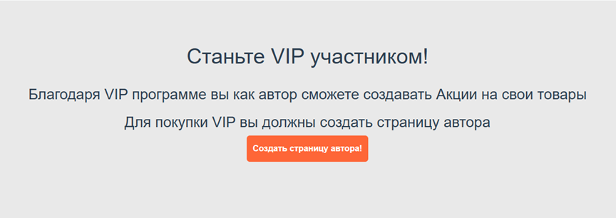 Доступ к материалам предоставляется в личном кабинете на платформе после оплаты.У авторов есть возможность получить статус VIP-участников. Он позволяет создавать акции на свои товары. Чтобы воспользоваться услугой, нужно создать страницу автора.