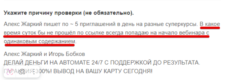 - Агрессивные методы продаж платных продуктов после посещения бесплатных вебинаров;