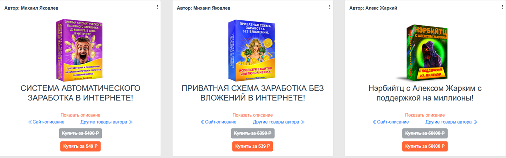 Обратите внимание на разницу в цене. Контент Алекса стоит 50 тыс. рублей, а то время как программы Яковлева продаются за 549 рублей.
