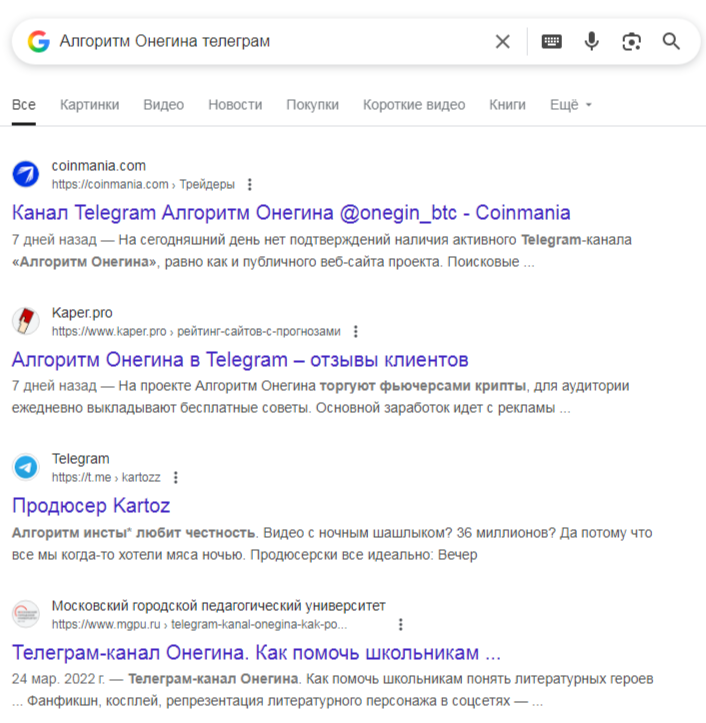 Обзор телеграм-канала «Алгоритм Онегина» анализ деятельности и отзывы о проекте @ onegin btc