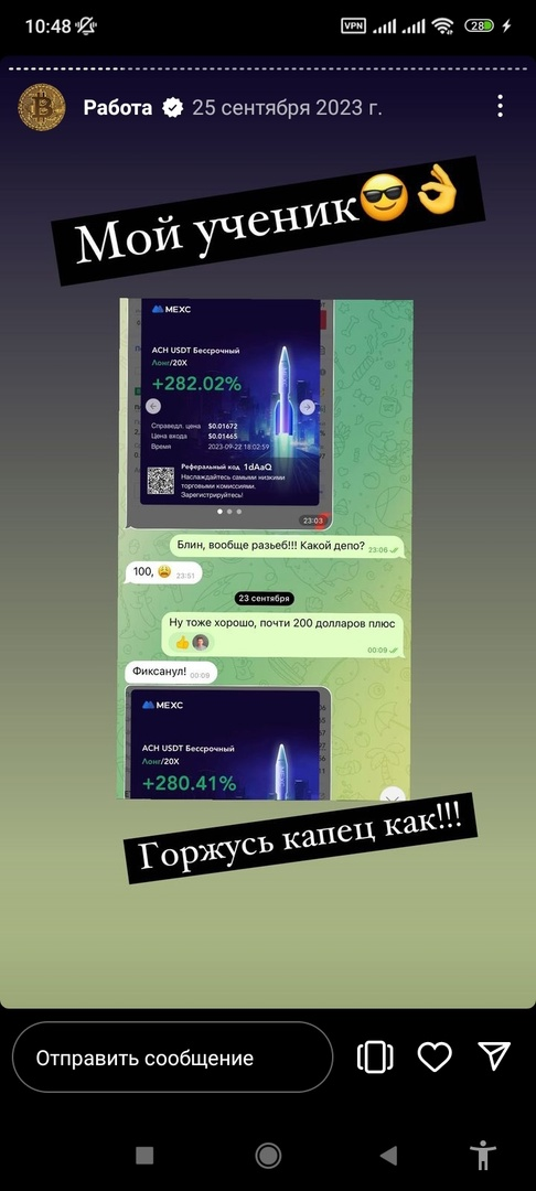 В ленте встречаются переписки с довольными клиентами. И несмотря на то, что админ сама уточнила – курс окупается не всегда – результаты неудачного опыта она не публикует. Все это указывает на то, что положительные отзывы фейковые – были самостоятельно сфабрикованы или заказаны за деньги.