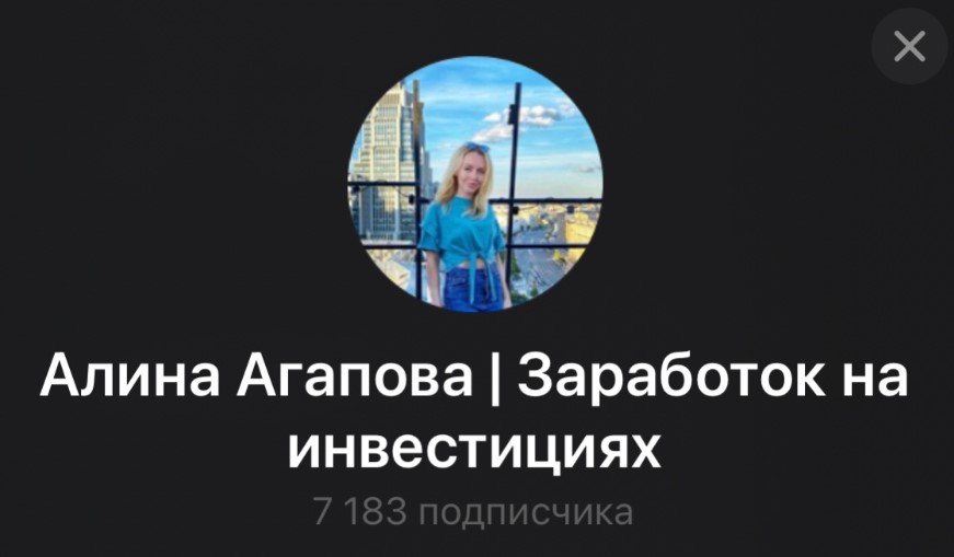 Телеграм-канал Алины Агаповой появился в начале 2023 года. Она называет себя опытным трейдером, прошедшим сложный путь от бедности до больших заработков. Утверждает, что собрала команду из успешных трейдеров и готова принимать инвестиции от всех желающих.
