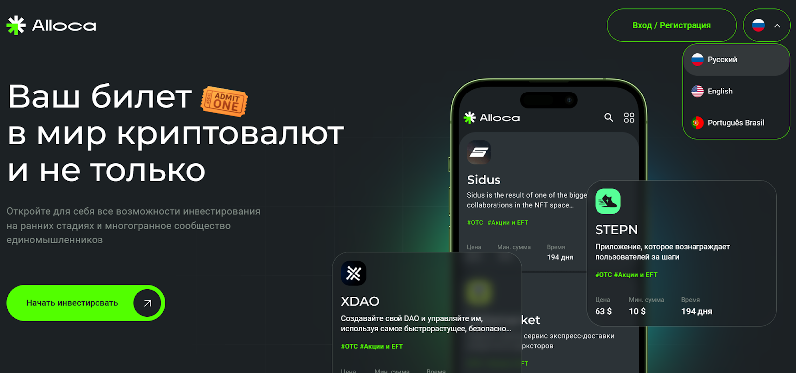 Alloca io — платформа для ранних инвестиций в криптовалютные проекты, NFT, аллокейшены и пресейлы, основанная в 2023 г. и работающая как венчур-клуб с социальными функциями: поддержка, блог, комьюнити.