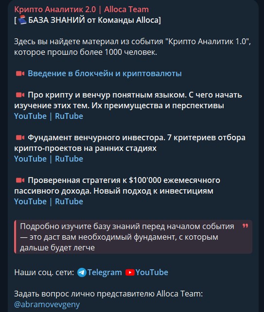 Телеграм-канал Крипто Аналитик 2.0 Alloca Team: отзывы и проверка работы сообщества