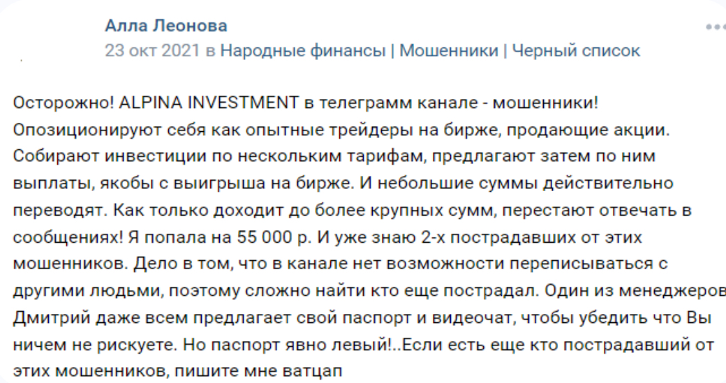 Наша редакция проанализировала деятельность сообщества Alpha Investment и готова поделиться факторами, указывающими на скам. Вот некоторые из них: