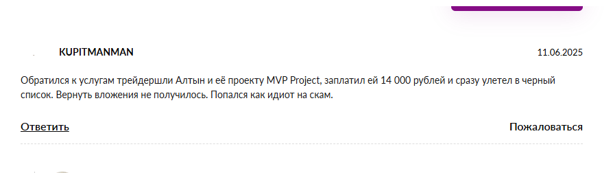 Отзывы трейдеров о работе с Mvp Project