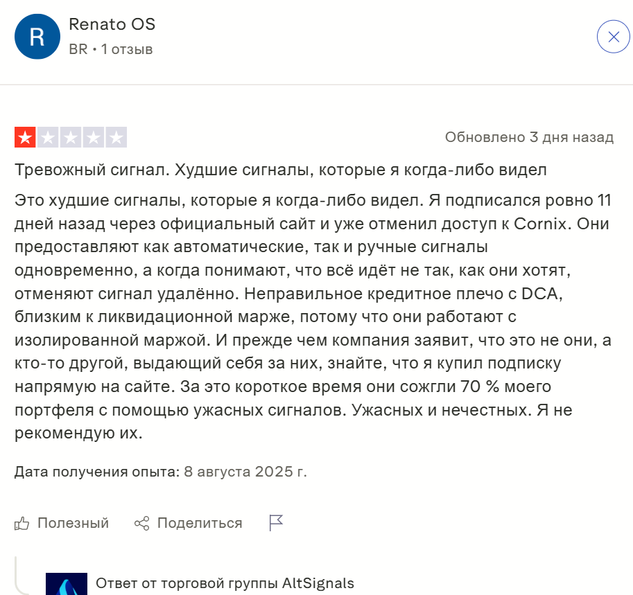 Если у вас был опыт сотрудничества с AltSignals, поделитесь им в комментариях. Это поможет другим трейдерам принять обоснованное решение.