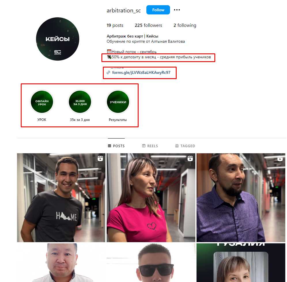 В Instagram группе по арбитражу криптовалют, можно увидеть большое количество положительных отзывов, о которых говорилось ранее. Однако как мы говорили ранее, они либо куплены, либо подделаны командой Алтыная Валитова.