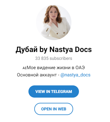 В Телеграм-канале Dubai Nastya Docs 33 000 подписчиков. Там девушка публикует различные мотивирующие сообщения, рассказывает о жизни в Дубае. Финансовые советы она в Дубай by Nastya Docs не дает.