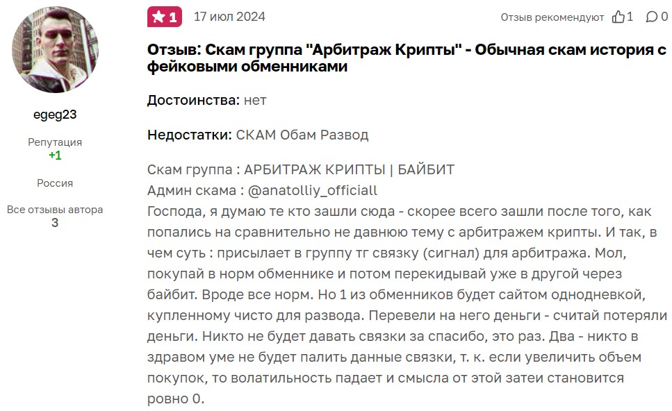 Канал Арбитраж крипты Байбит: отзывы реальных пользователей. Можно ли заработать с сообществом Anatoliy Official?