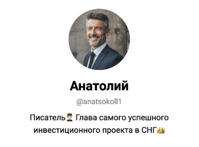 Мужчина утверждает, что с командой подбирает наиболее выгодные активы и продает их с огромной прибылью. Минимальная сумма вложений для сотрудничества с Anatsokoll составляет 10 000 рублей.
