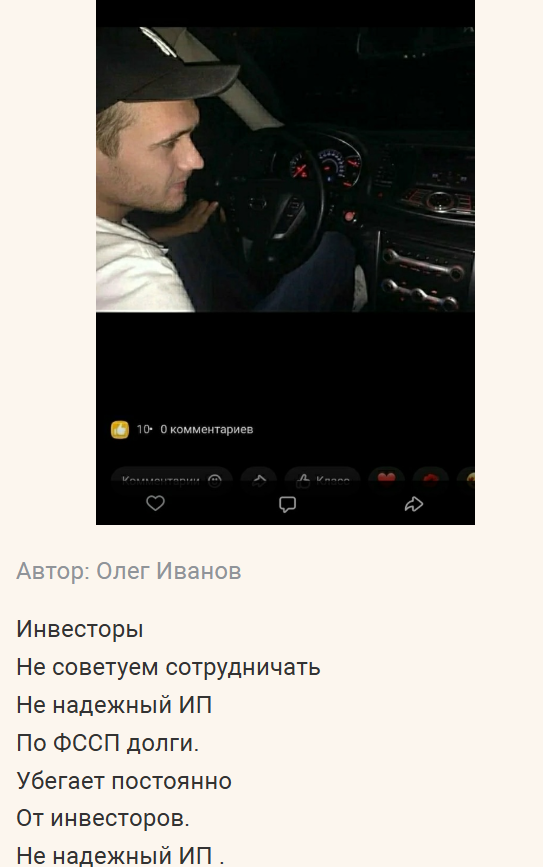 Практически на всех площадках, которые связаны с темой бизнеса и инвестиций, Денис Андреев отзывы получил исключительно негативные. Люди жалуются на развод со стороны инвестора. Они не только не получили дивиденды, но и лишились инвестиций. Это оказалось разводом несмотря на наличие ИП.