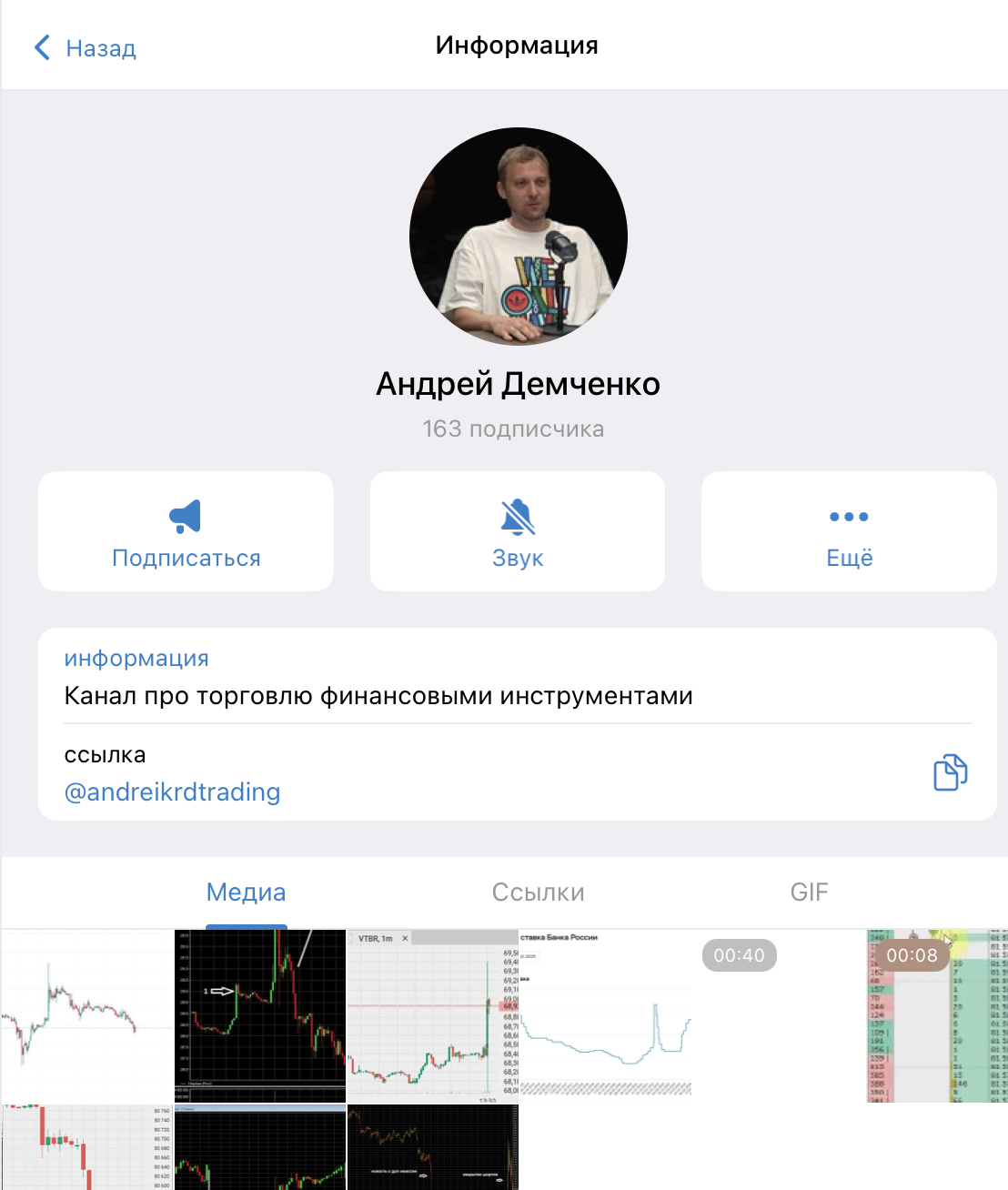 Телеграм канал Andreikrdtrading позиционируется как площадка для трейдеров, где автор – Андрей Демченко. Он начал свою карьеру в проп-трейдинге с 2010 года. Делится торговыми сигналами и аналитикой. Его профессиональный путь стартовал с торговли на американском рынке, а в 2012 году он перешел на российский. Андрей присоединился к проприетарной компании «А-Лаб». Где, согласно открытой информации, он также является преподавателем в собственной торговой школе.