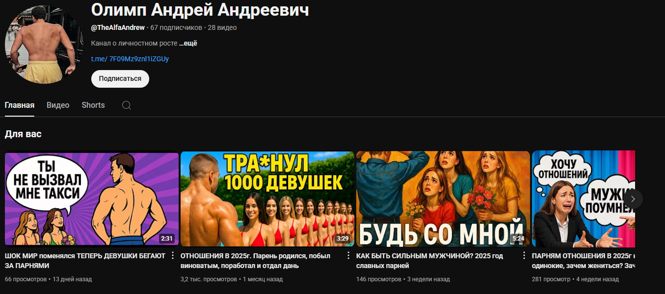 Создатель проекта о крипте «Андрей Андреевич Олимп» ведет канал @TheAlfaAndrew на YouTube, у которого всего 67 подписчиков.