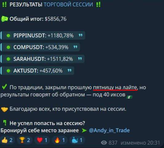 Обзор проекта по крипте «Андрей Трейдит»: анализ контента в телеграмм-канале Andy in Trade, отзывы подписчиков о предложениях Фролова