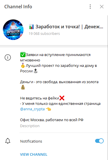 Список минусов этого проекта можно долго перечислять. Заработать с мошенницей пользователи не смогут. Ее даже невозможно найти вне Телеграма. Ведь она использует вымышленные данные. А ее легенда об огромных доходах ее клиентов – это фейк.