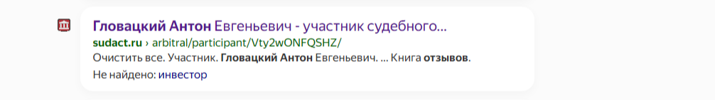 На официальном сайте ресурса «Судебные и нормативные акты РФ» существовала страница, на которой упоминается, что Гловацкий был участником судебного процесса. К сожалению подробности выяснить невозможно, поскольку вкладка удалена.