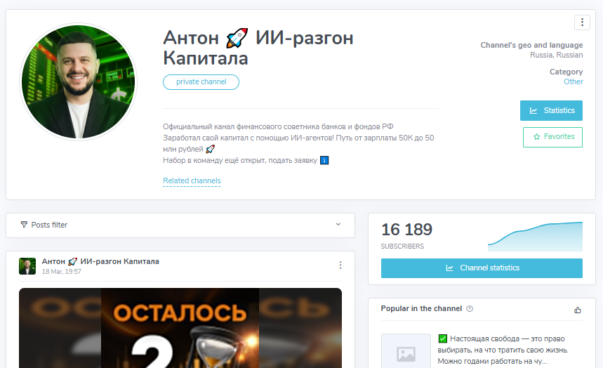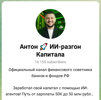 Антон ИИ-разгон Капитала – паблик, посвященный заработку на криптовалюте. Его ведущий позиционирует себя как финансового советника банков и фондов РФ. В ленте своего сообщества Антон обещает раскрыть свой путь от зарплаты в 50 000 до 50 млн. руб. Что правда и ложь на данном канале – будем разбираться в нашем обзоре.