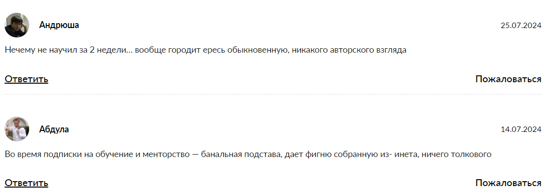 Как видим, автор канала дает лишь общую информацию – это вовсе не гарантирует того, что ученик будет торговать на бирже и выходить в прибыль. Примечательно, что оставить отклики в Телеграмме проекта нельзя. Таким образом, довольных клиентов у автора не имеется.