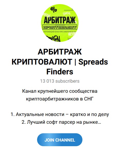 Арбитраж Криптовалют Spreads Finders — канал в Телеграмме о межбиржевом арбитраже. Ведется якобы очень успешными трейдерами, которые предлагают своей аудитории бесплатные связки для заработка. Рассмотрим, как устроен этот проект и можно ли доверять его владельцам.