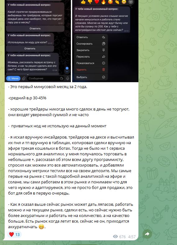 Также многие пользователи жалуются на то, что бот не функционирует. Сам разработчик сообщает, что роботов несколько, используются не все. Боты для копитрейдинга называются Magnum Trade Bot и Arghost Solana Bot. В настоящее время они работают.