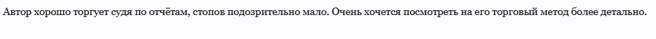 • в открытом доступе есть статистика по сделкам автора, информация по использованию предлагаемой стратегии;