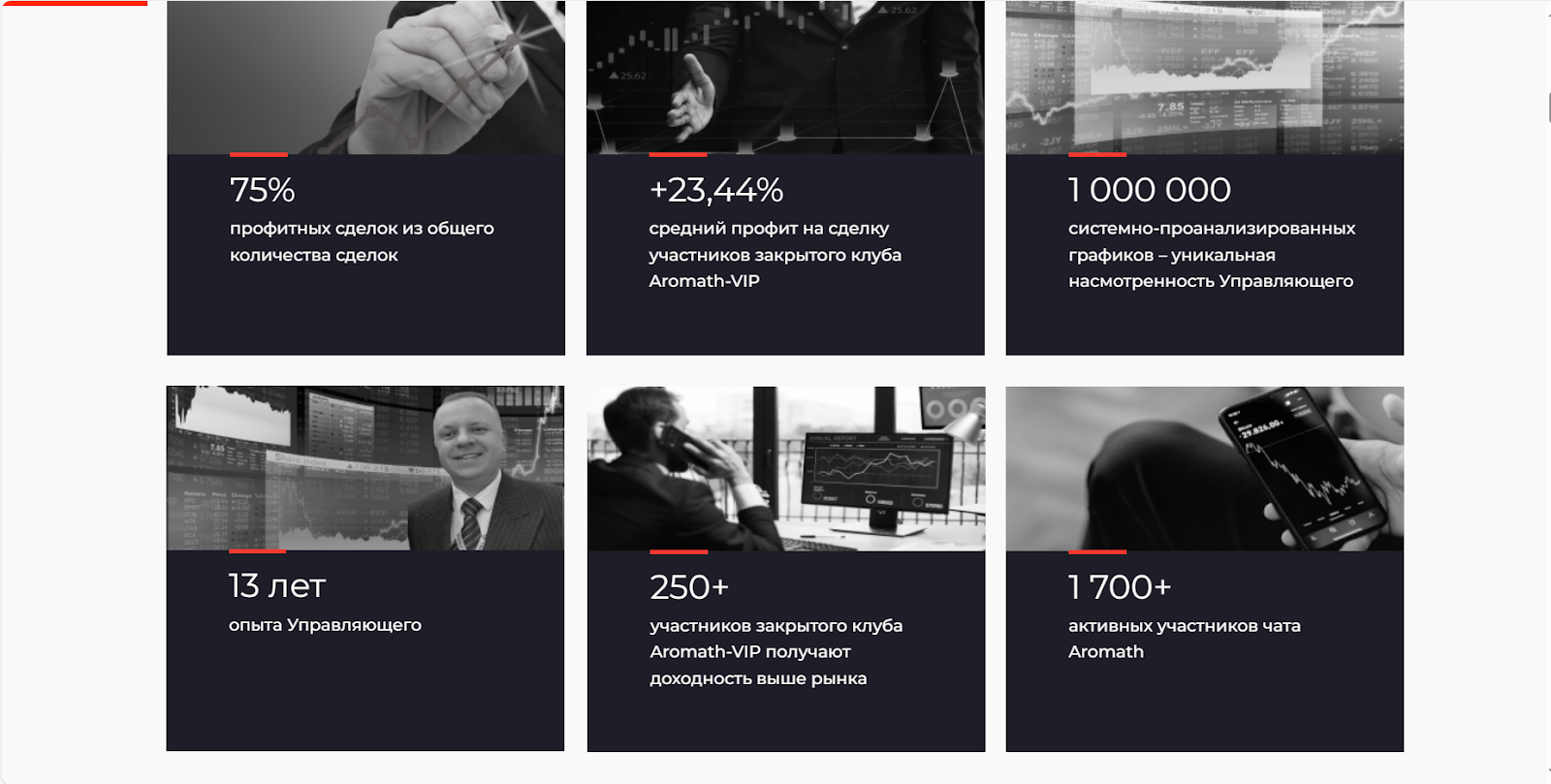 При рекламе VIP-курса Ромашов любит обещать секретную систему, которая позволит увеличивать профит в разы, стать профессиональным трейдером и научиться идти на риск, зарабатывая не только в стабильной экономической ситуации, но и в кризис.Сайт Aromath Ru является одностраничным. Содержит некоторые статистические данные, согласно которым, прибыль на сделку участников элитного клуба составляет около 23%, также публикуются положительные и довольные отзывы. В общем, автор предлагает много информации, но не гарантии и подтвержденные сделки.