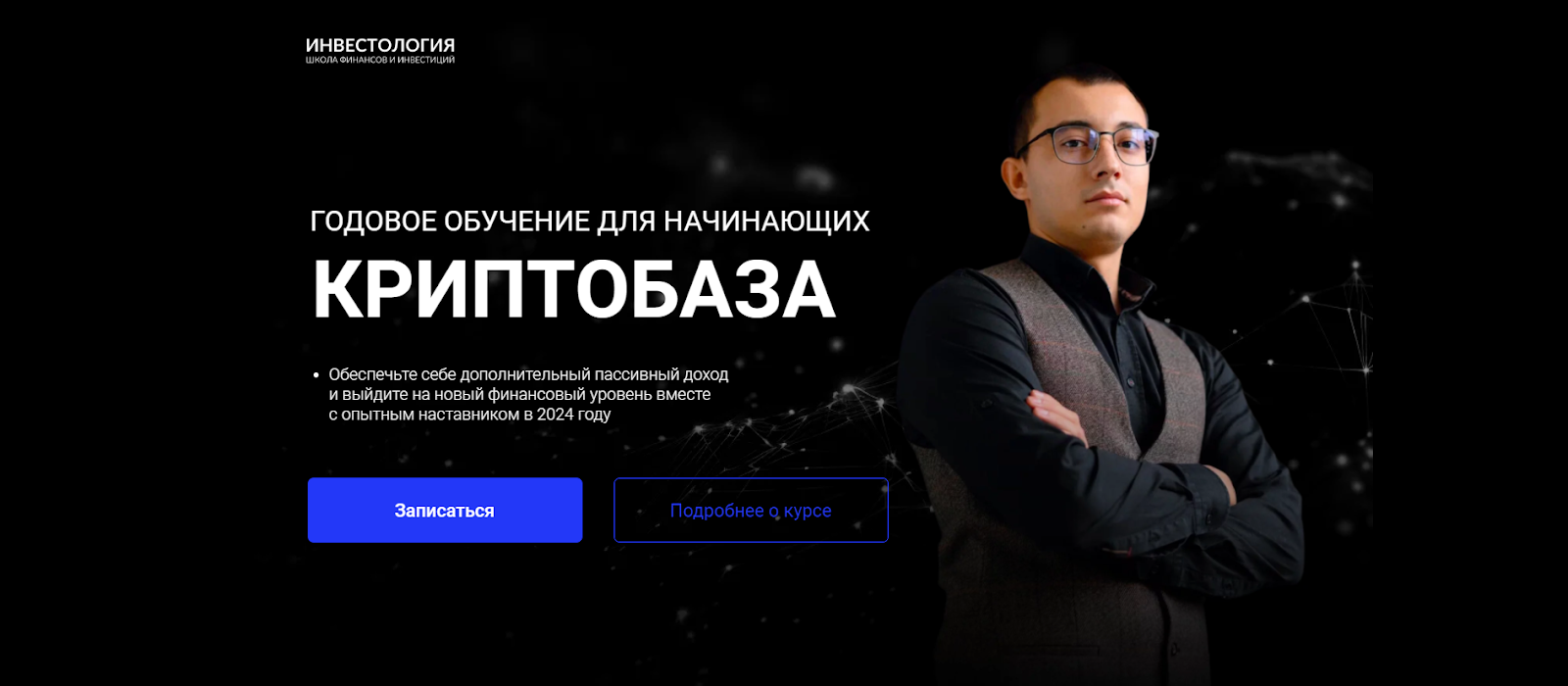 В школе “Инвестолоджи крипто” выполняет роль эксперта по криптовалюте. Он пишет статьи, ведет курсы и ведет закрытый клуб.Стоимость платных услуг