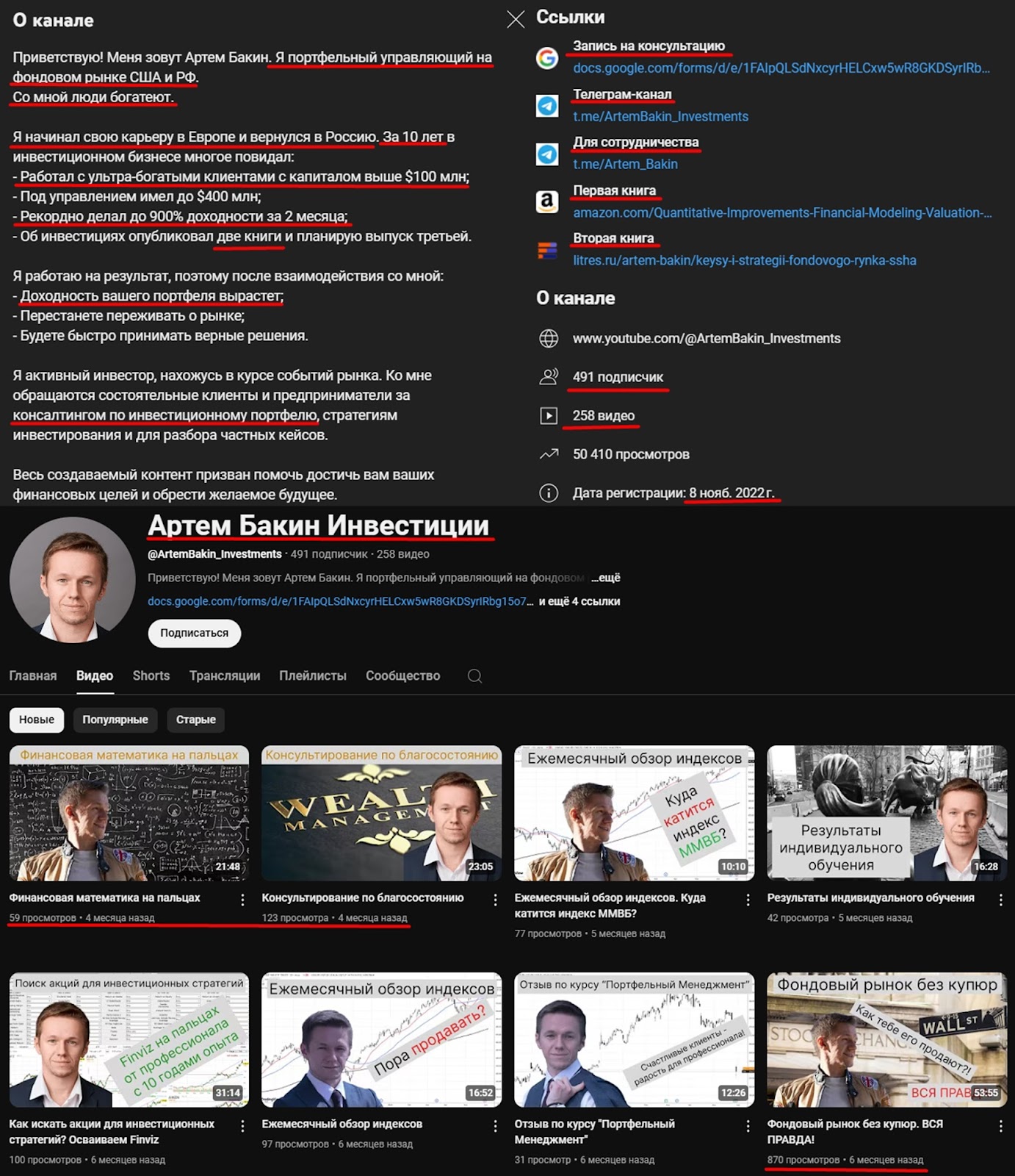На youtube инвестор Artem Bakin публикует интервью с учениками в положительном ключе. Пользователи сообщают, что начали понимать как работает инвестиционный портфель.