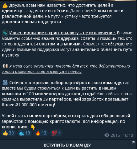 Сотни спамовых постов с непонятными сигналами — известная система прогрева. Вот в этом и выражен базовый метод привлечения аудитории за счет положительных сделок.