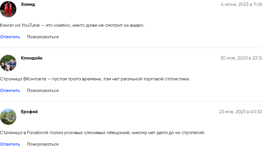 На внешних платформах мы нашли отрицательную обратную связь. Пользователи утверждают про то, что все сделки убыточные.
