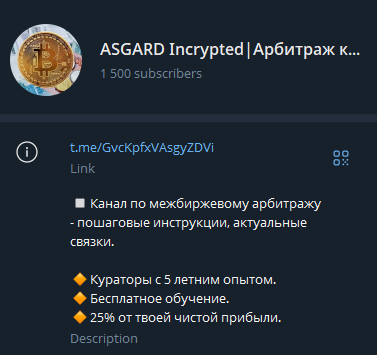 Asgard Incrypted – это P2P-сервис, работающий в экосистеме In Crypto Arb, продвигаемый через каналы @InCryptoArbBot и @In_Crypto_Arb. Проект позиционируется как инструмент для арбитража криптовалюты, позволяющий пользователям создавать связки, обменивать активы и получать доход за счет спреда между P2P-обменниками. Такая структура характерна для схем, где прибыль зависит от разницы цен на разных платформах. Представлено несколько вариантов взаимодействия: через Telegram-бота, канал, а также возможен вывод депозита. Под проектом стоит фигура Марк In Crypto Arb, хотя о его реальном опыте и репутации сведений немного.
