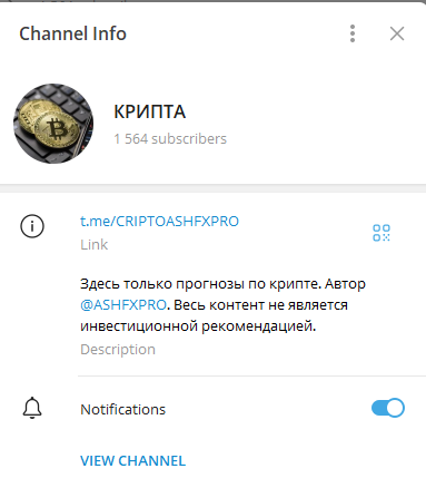 Ashfxpro – это трейдер, автор Телеграм-канала Крипта, который открывается по ссылке t me criptoashfxpro, посвященного прогнозам по крипте. В открытых источниках есть информация о том, что трейдер ведет каналы VENIVIDIVICI с 73,5 тыс. подписчиков и RocketToTheMoon с 88,3 тыс. подписчиков, где также делятся прогнозами по фондовому рынку. Монетизация ресурса CRIPTOASHFXPRO происходит за счет публикации рекламы в футере. Также у него есть Vip Ashfxpro Bot, где он предлагает клиентам сигналы с высокой проходимостью. Но с верификатором трейдер не сотрудничает.