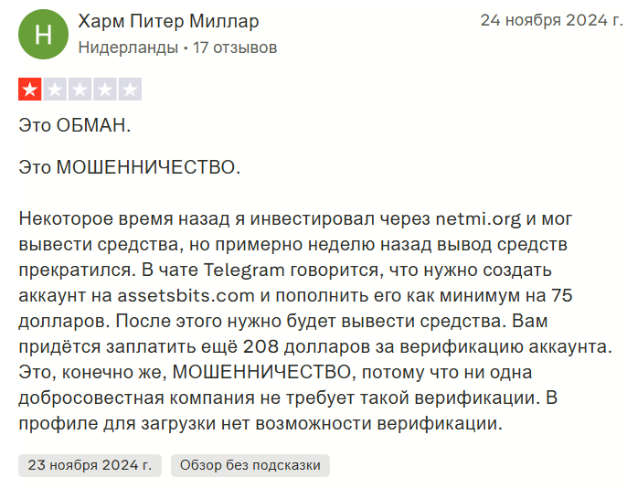 Сайт Assetsbit com на самом деле не имеет отношения к трейдингу и не может быть источником пассивного дохода. У него есть характерные для мошеннических проектов минусы: