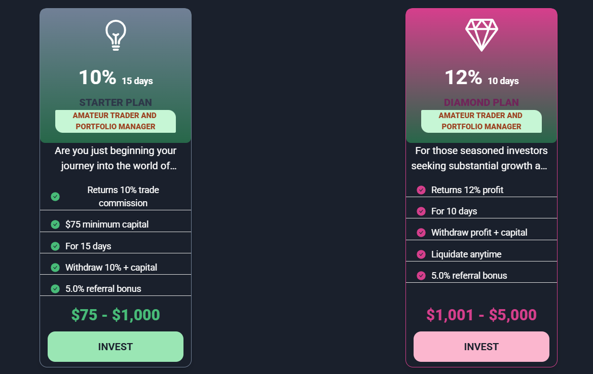 Минимально в Assetsbit можно вложить $75, на которые обещают начисление 10% прибыли за 15 дней. При более крупных депозитах клиент якобы может рассчитывать на более высокие проценты. Тем, кто не хочет делать депозит, предлагают зарабатывать на партнерской программе.
