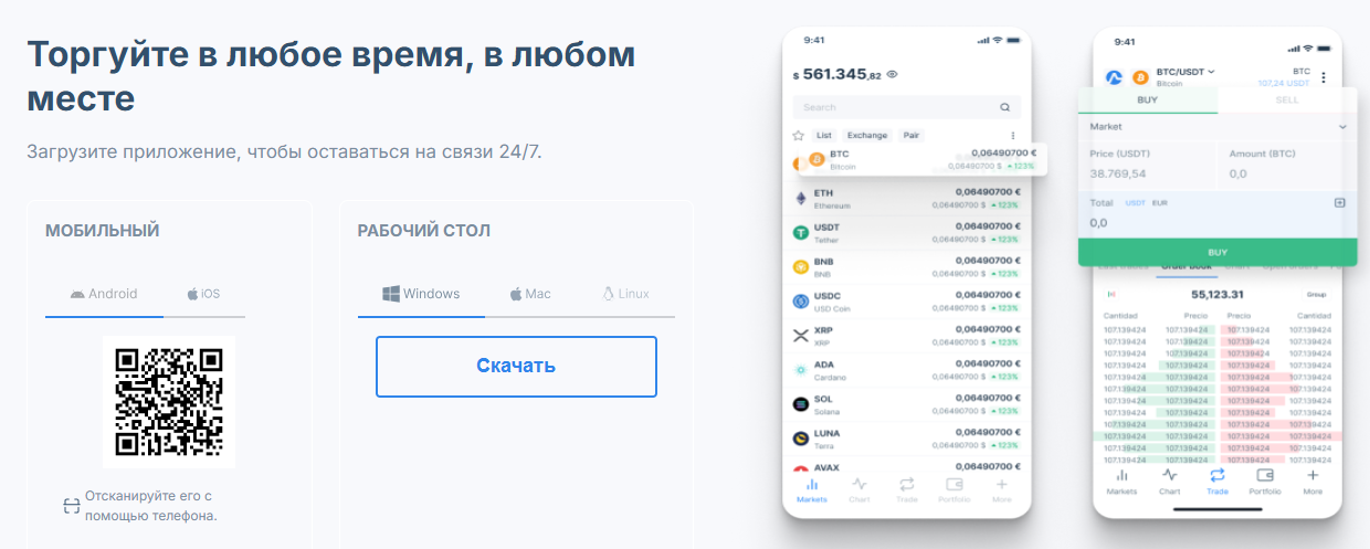 Владельцы ресурса заявляют, что занимают первое место по количеству предлагаемых криптовалют. Их ассортимент в 10 раз больше, чем Coinbase и в 5 раз, чем у Binance. Приложение поддерживает более 9000 торговых пар. Кроме того, этот многобиржевой агрегатор позволяет трейдерам “получить полный контроль над собственной криптовалютой”. Клиенты могут безопасно подключить Gate.io, Kucoin и еще к более 70 других блокчейнов и биржевых сервисов.