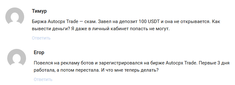 Отзывы трейдеров о работе криптобиржи Autocpx Trade