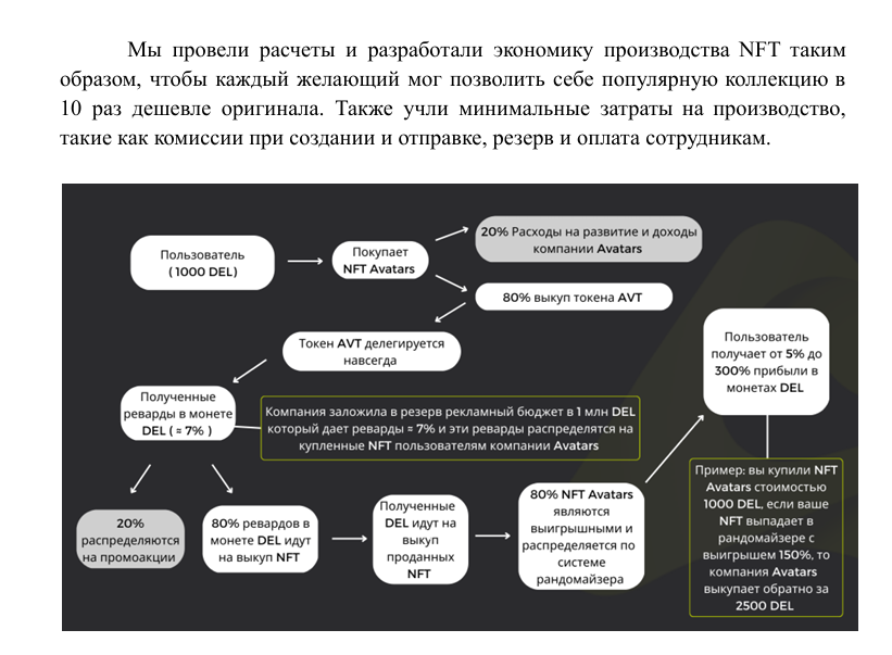 В документах Avatars было прописано, что большая часть заработка от продажи Nft и доходов от стейкинга направляется на выкуп токена с рынка, что по задумке авторов должно было поддерживать его курс и делать дороже.