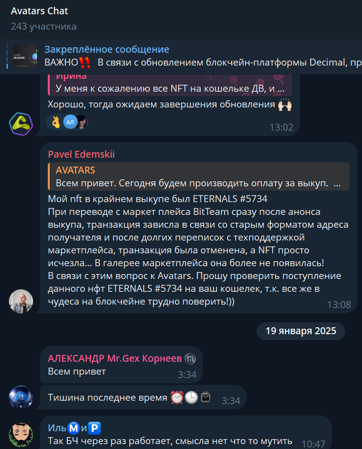 В сети встречаются отдельные сообщения от людей, которые жаловались на отсутствие возможности вывести инвестиции с «Аватарс», но положительных отзывов о сотрудничестве с проектом по крипте с 2024 года практически нет.