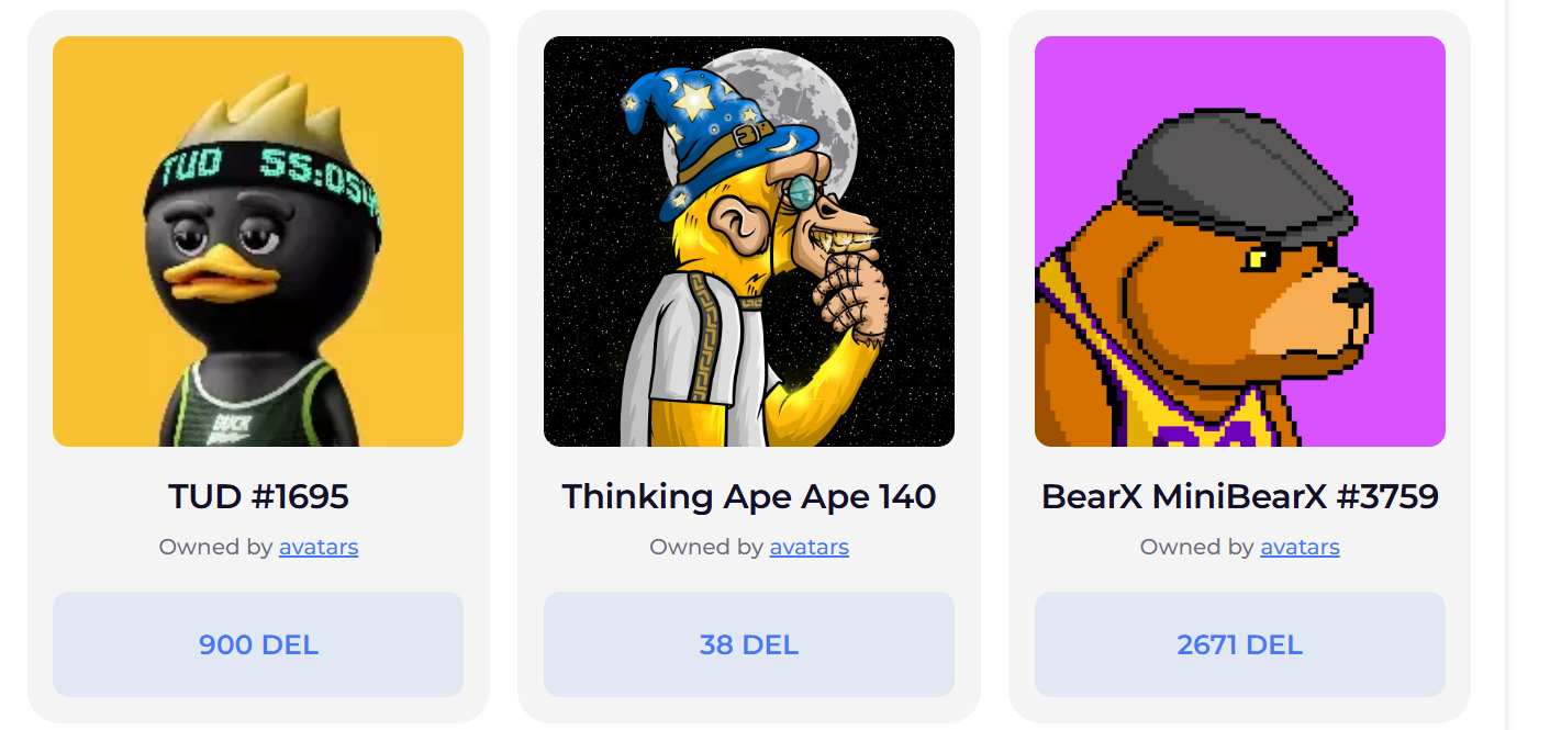 Для использования площадки нужно покупать Nft, причем делать это предлагают на бирже Bit team, где представлены невзаимозаменяемые токены ценой от 38 DELL до нескольких тысяч.