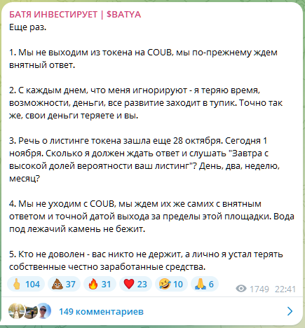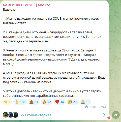 К тому же стоит отметить, что на COUB токен больше не размещается. Это отмечает сам автор.
